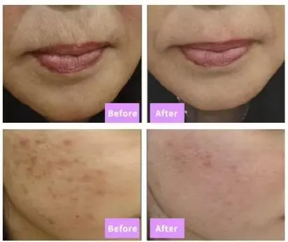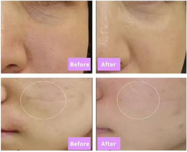 2). Vermindering van ouderdomsvlekken en puistjes, acnelittekens.