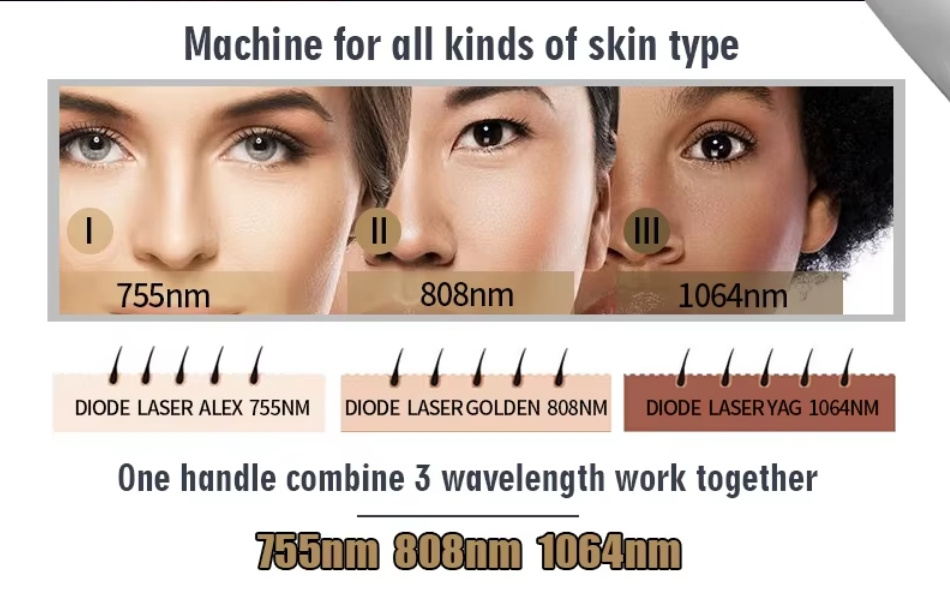 1. 755 808 1064nm diodelaser ontharingssysteemmaakt gebruik van de meest geavanceerde technologie die doordringt, meer verzekerd van de prestaties van het mechanisme, klinische resultaten en veiligheid.