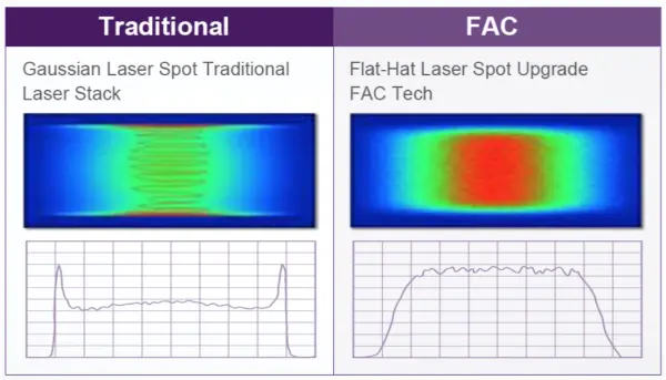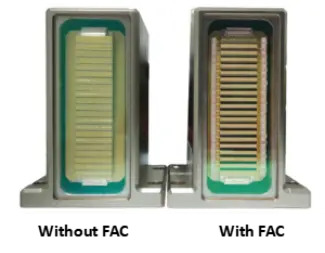 Diodelasers zijn over het algemeen inefficiënt vanwege de hoge, asymmetrische divergentie, vooral in de snelle as. FAC-technologie lost dit op door een cilindrische lens met hoge numerieke opening (NA≈0,8) direct voor de laserzender te plaatsen, waardoor een gecollimeerde straal met hoge intensiteit ontstaat
