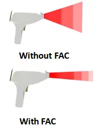 Hogere energiedichtheid: FAC focust de straal, waardoor bijna 99% van de energie de haarzakjes bereikt in plaats van te verstrooien.