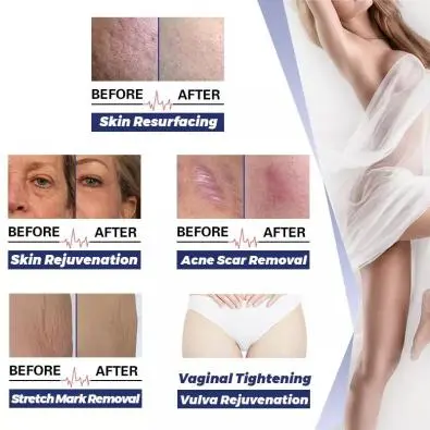 2. Dit lichtgewicht systeem levert precieze CO2 -laserergie in een fractioneel patroon en behandelt slechts een fractie van de huid. Deze methode bevordert snellere genezing dan traditionele lasers. Het is ideaal voor delicate gebieden en populair vanwege de efficiëntie en de verkorte hersteltijd van de patiënt.
